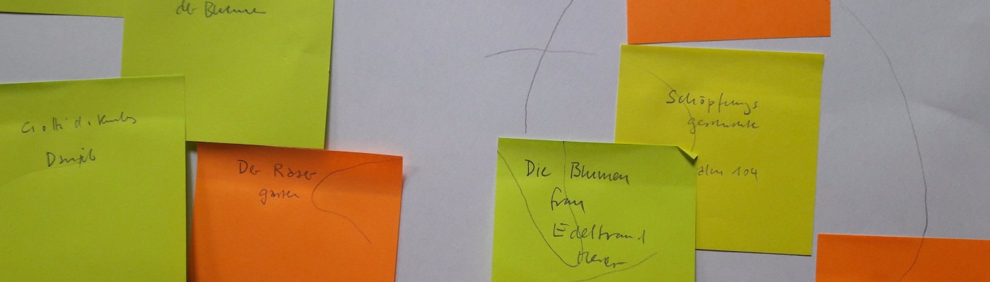 Und schon beginnen die Geschichten zu sprudeln! Am besten geht die Methode zu zweit: Jeder schreibt seine Zettel, dann stellt man sich in kurzer Form die Zettel vor. Und jetzt wird gewünscht: Schreib über den Orion, bittet mich Anja – und schon schon schreibe ich los: Der blaue Anorak, meine Skis mit der Spannbindung, wie es heiss wurde unter dem Wollpullover, wenn wir die Piste entlang hochstiegen. Tänneln nannte man das …