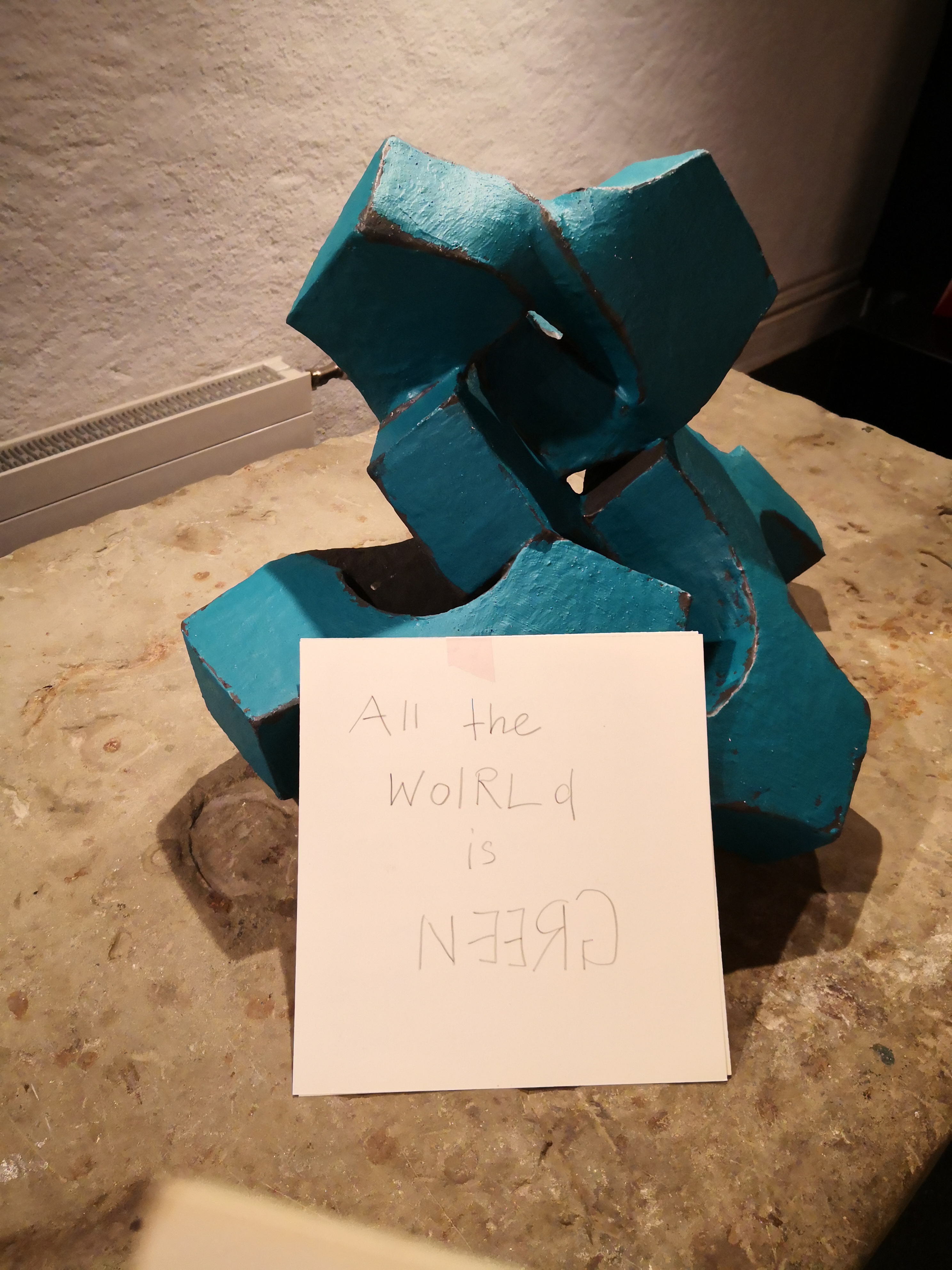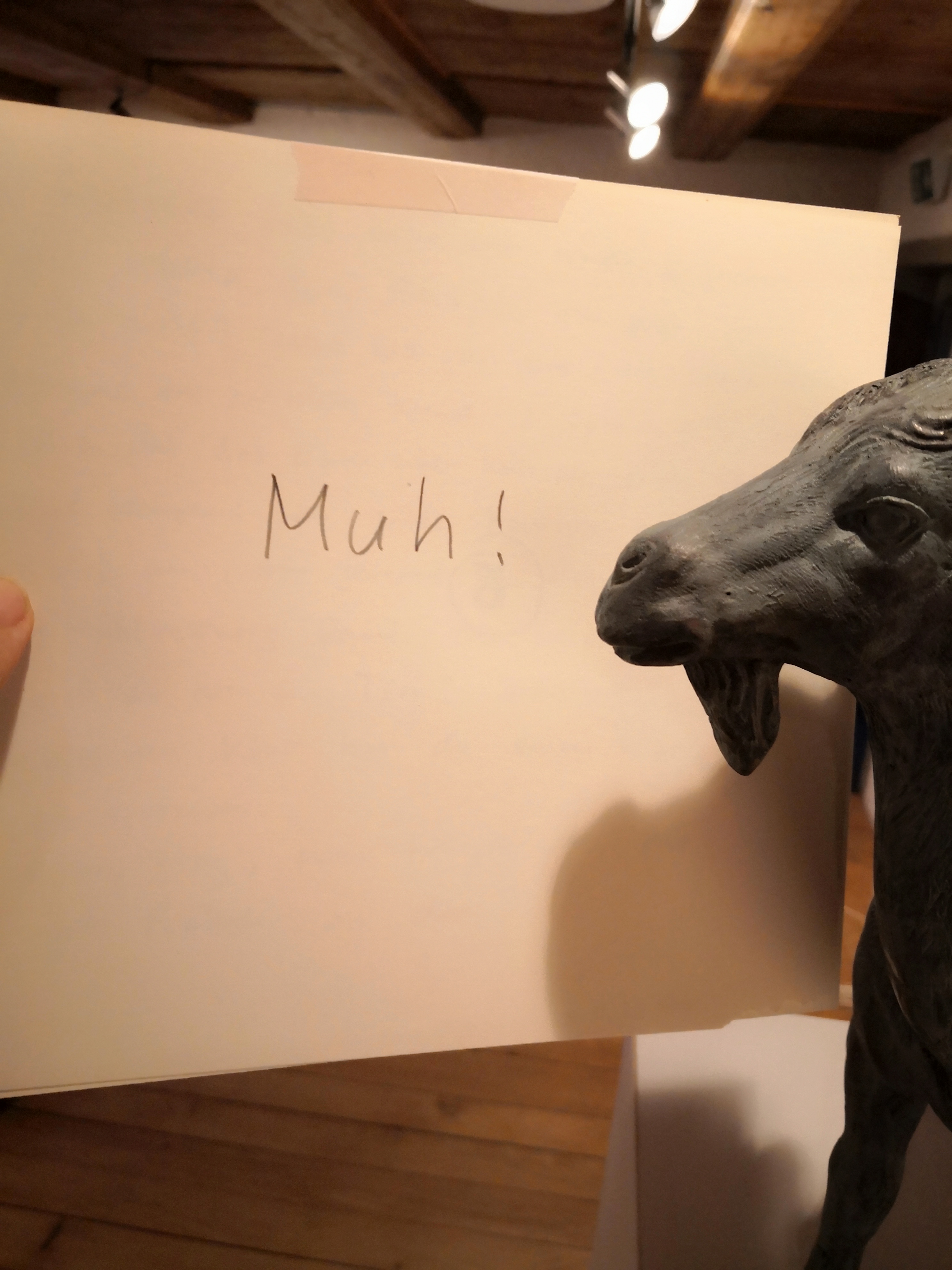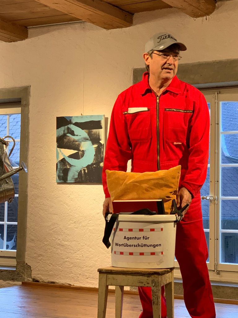 Ich gründete die „Agentur für Wortüberschüttungen“. Um 14 Uhr traf ich in der Ausstellung ein und versah die Bilder uns Skulpturen mit eigenen Titeln und beschrieb sie in einem Spontantext.
