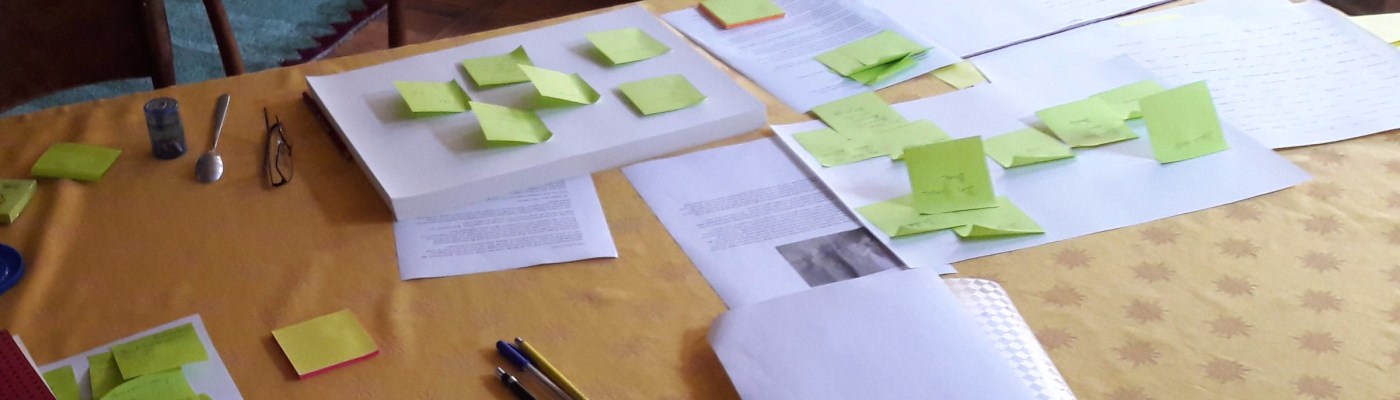 Hier steht ein Tisch, an dem sechs Leute bequem sitzen. Wenn wir feiern, dann bietet er Platz für zwanzig Gäste. Bei der Arbeit am Text ist der grosse Tisch auch die Werkstatt der Ideen. Der Blick aus dem Fenster fällt auf den Kastanienbaum, der auf dem Platz vor dem Haus steht.