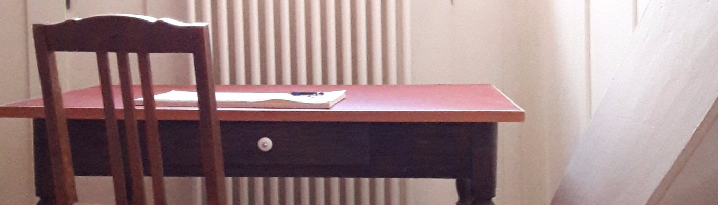 Das ganze Haus zählt 11 Zimmer auf fünf Stockwerken. Unseren schreibenden Gästen im Schreibhaus stehen vier einfach eingerichtete Zimmer und im Sommer das Laubenhäuschen zur Verfügung. In jedem Zimmer gibt es einen Tisch, ein Bett und die Atmosphäre eines Hauses, in dem seit vielen Generationen gelebt und gearbeitet wird.